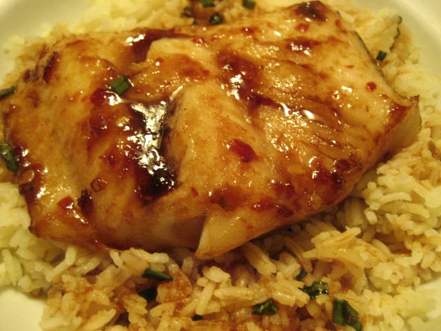 Place 1 fillet each in 2 shallow bowls on top of rice. Spoon ginger sauce around fish.